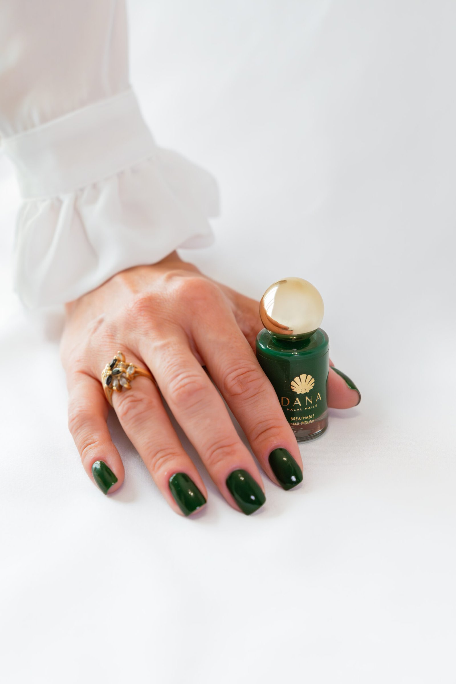 Madina dark green breathable nail polish is a deep, captivating shade inspired by the serene and sacred city of Madina, Saudi Arabia. This Wudu-friendly formula allows your nails to breathe while providing a rich, elegant finish. The dark green hue evokes a sense of tranquility, faith, and timeless beauty, making it a perfect choice for those seeking a refined yet grounded look. Ideal for both everyday wear and special occasions, Madina dark green brings a touch of heritage and sophistication to your nails.